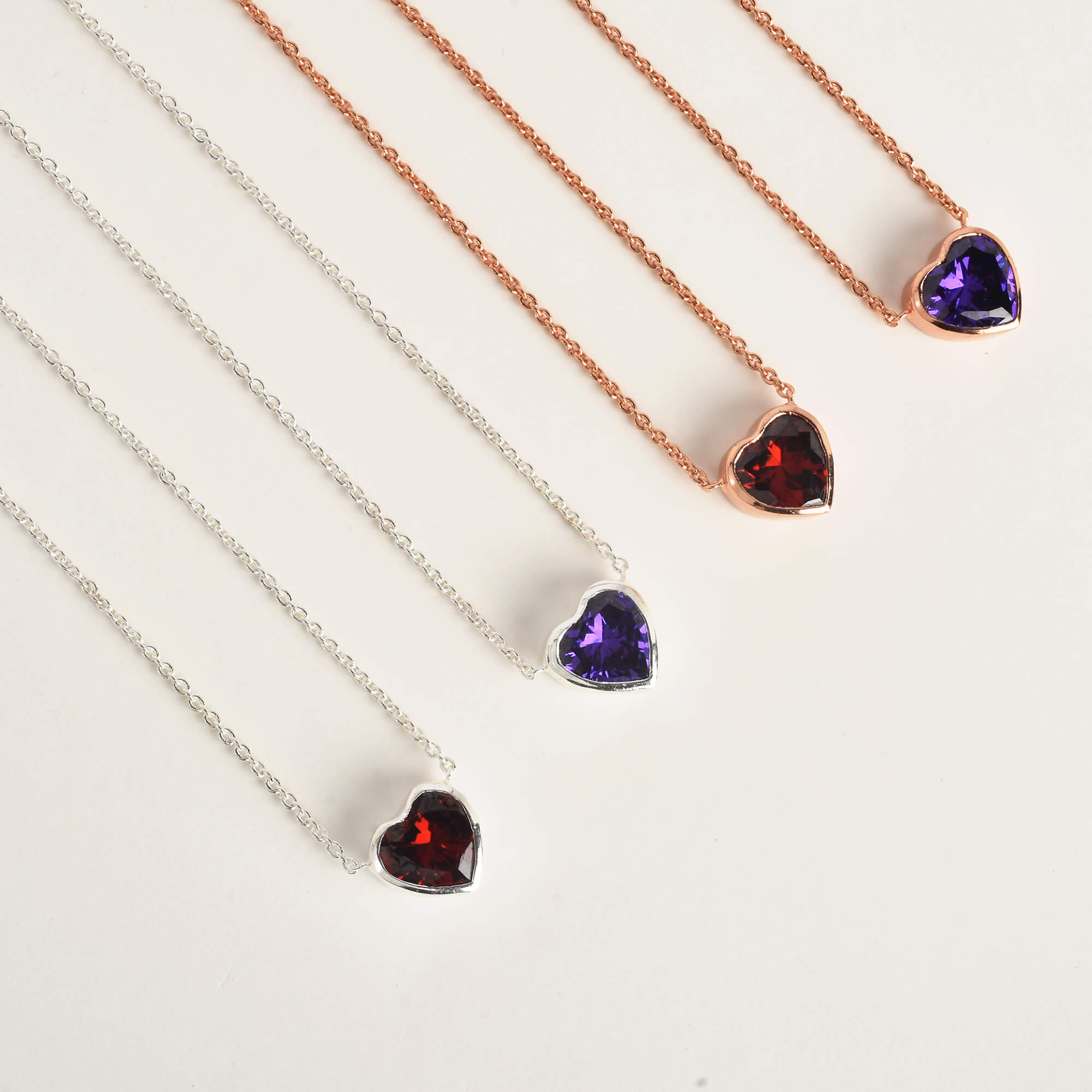 February Birthstone Amethyst CZ Zircon Heart Pendant Necklace